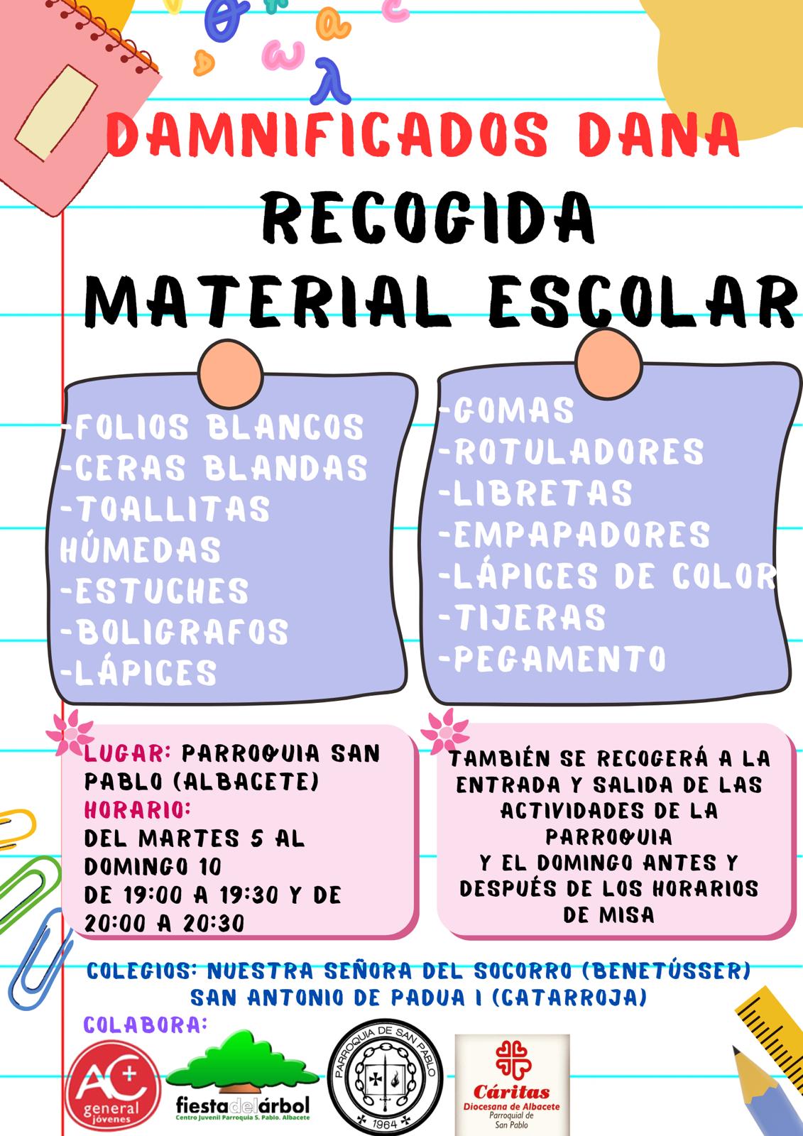 Nos hacemos eco de la recogida de material que ha organizado la Parroquia San Pablo e invitamos a colaborar a toda la comunidad educativa.